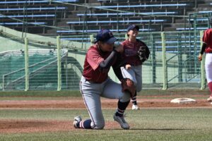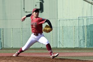 先発の櫻庭琉華が初回に連打と盗塁で無死二、三塁のピンチを招くと、失策間に先制を許した。それでも続く4番打者を打ち取ると、5番打者のサードゴロで飛び出した三塁走者をアウトにするなど最少失点で切り抜けた。さらに2回の1死二、三塁のピンチはダブルプレーで切り抜け流れを完全に渡さない粘りの投球をみせた。