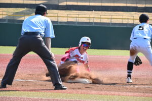 それでも2回に6番・酒本玲奈のレフトへの二塁打などで二、三塁とすると7番・丸田祭のスクイズで同点に追いつく。さらに8番・小峰暖乃香にもセンター前タイムリーが生まれて一気に逆転。3回には2番・佐藤華のタイムリーで3点目を挙げた。