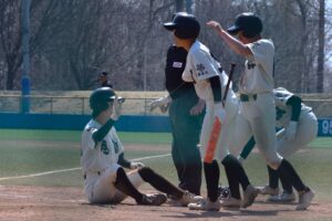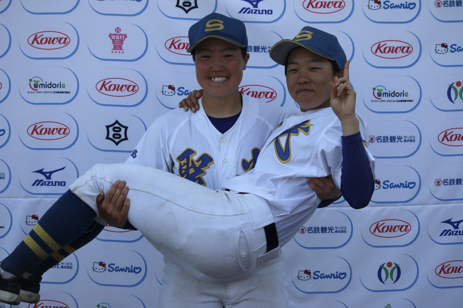 尽誠学園打線の勢いは続く2回にも止まることはなく、3番・新見ひより、4番千葉如乃の連続長打でチャンスを作ると、7番・川上愛にランニングホームランが飛び出す。さらに後続も続き、この回も打者一巡となる攻撃で6点を追加しリードを拡げる。