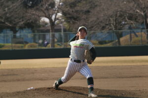 ウェルネスの先発杉山凛は力強いストレートと変化球を駆使し、ランナーは出すも要所を締めたピッチングを見せる。